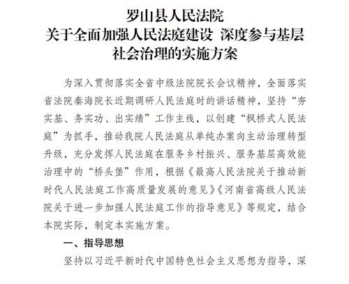 聚力“强基赋能”,实现五个“100%”——罗山县法院出台《实施方案》全面加强人民法庭建设